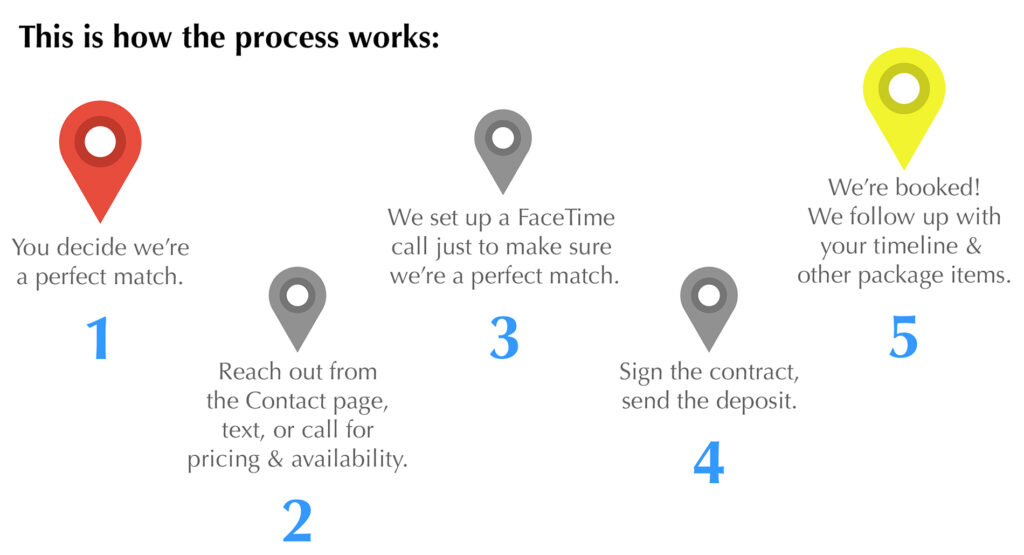 So whether it’s your wedding, Bar or Bat Mitzvah, Sweet 16, or corporate event, this is how the process works: